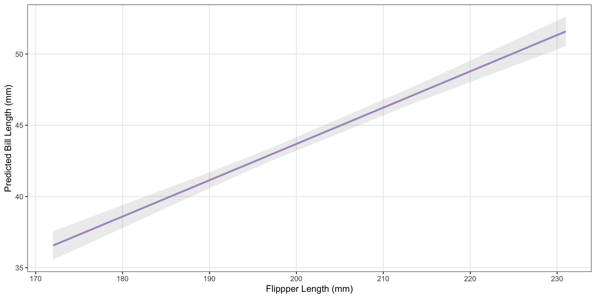 ggplot(mapping = aes(x = flipper_length_mm, y = estimate)) +